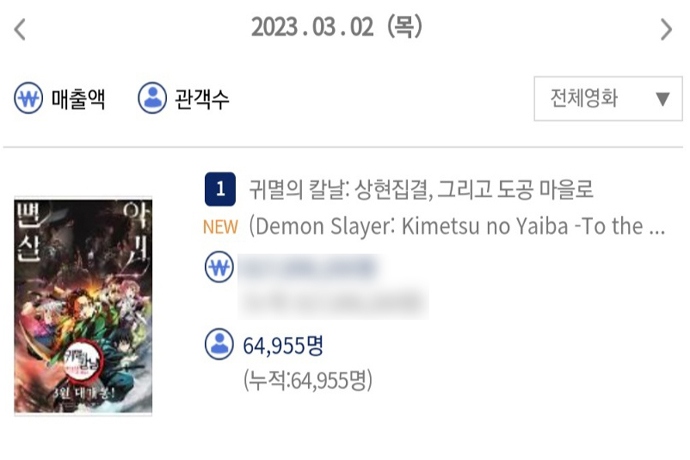 <귀멸의 칼날: 상현집결, 그리고 도공 마을로>가 지난 2일 극장에서 본격 개봉한 가운데 쟁쟁한 경쟁작 속 당당히 박스오피스 1위를 차지하며 흥행의 시작...