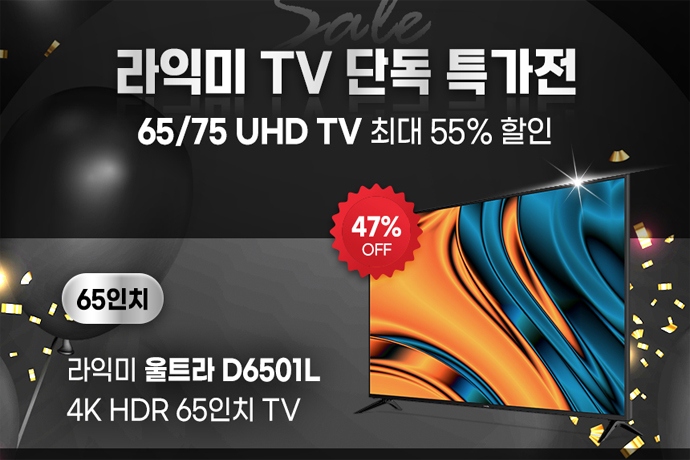 라익미(대표 권오광)가 울트라 65, 75인치 대형 UHD TV 2종의 파격 할인 행사를 진행한다. 2월 28일부터 보름 동안 진행하는 이번 행사에서는 '라익미 울트라 D6...