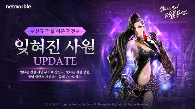 넷마블(대표 권영식, 도기욱)이 모바일 MMORPG '블레이드 & 소울 레볼루션(개발사 넷마블에프앤씨)’에 신규 시즌 던전 ‘잊혀진 사원’을 추가하는 등 업데...