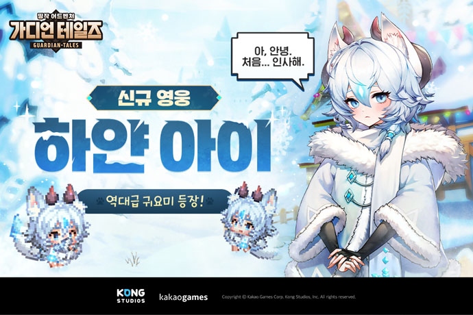 (주)카카오게임즈(대표 조계현)는 미국 개발사 콩 스튜디오(대표 원(Won))가 개발한 모바일 RPG '가디언 테일즈'에 신규 영웅 '하얀 아이'를 추가했다고 10일 밝...