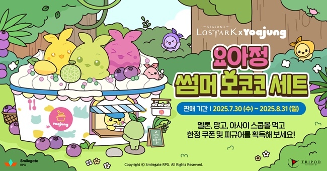 스마일게이트 RPG(대표 지원길)가 자사의 MMORPG(다중접속역할수행게임) '로스트아크'와 프리미엄 디저트 브랜드 '요아정'이 협업해 '요아정 썸머 모코코 세트'...