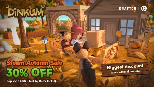 크래프톤(대표 김창한)이 자사가 퍼블리싱하는 생존 생활 시뮬레이션 게임 '딩컴(Dinkum)'이 Steam 가을 할인 프로모션에 참여한다고 밝혔다. 2025년 4월 정식 ...